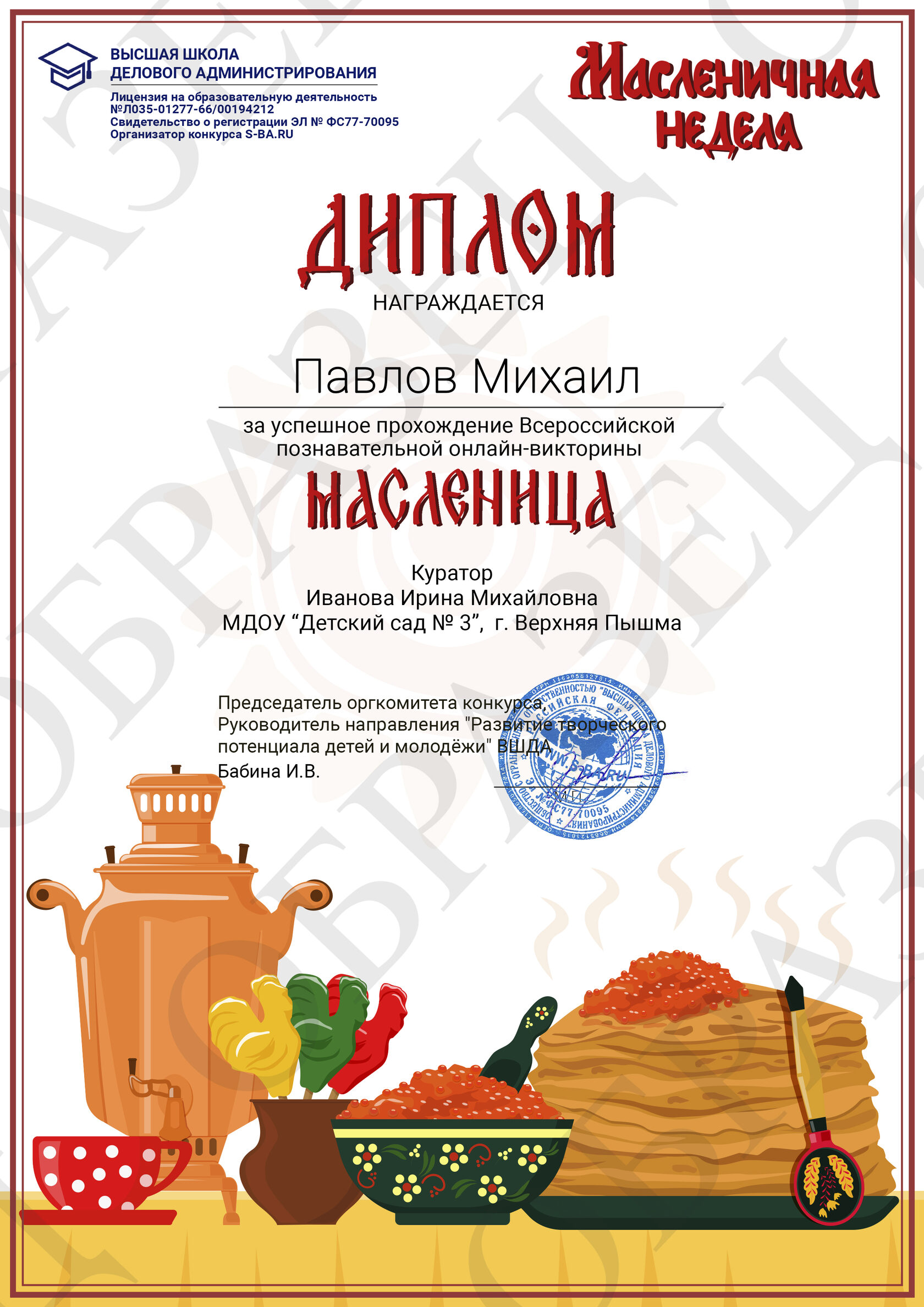 Оргкомитет уведомляет, что в случае неверного заполнения ВАМИ данных заявки (фамилия/имя участника, возраст, название образовательной организации и т.д.) исправления в наградных документах осуществляется на ВОЗМЕЗДНОЙ основе.
