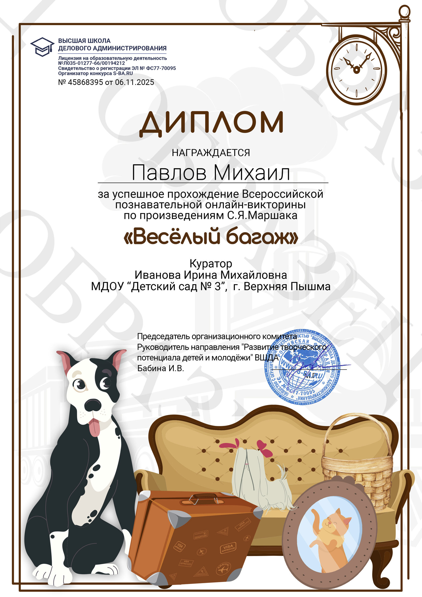 Дипломы участников будут размещены на сайте в разделе https://s-ba.ru/results не позднее 07 ноября 2025 года